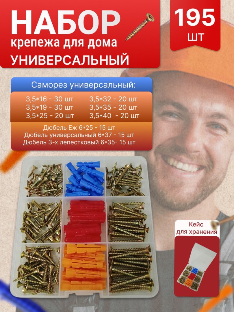 Набор крепежа " Домашний №3 " саморезы+дюбеля - 275 шт
